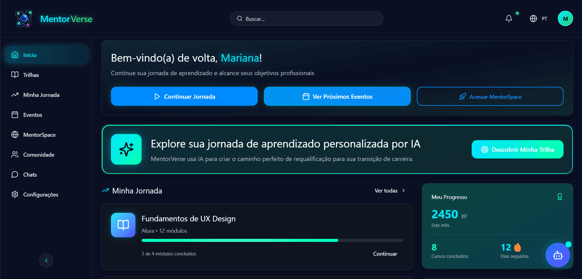 AI-Driven Learning: An intelligent system that maps personalized career paths based on the user's goals and market gaps.