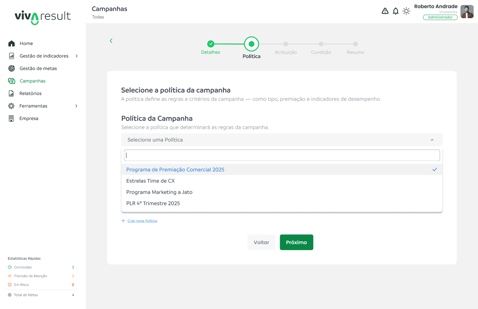 The platform enables managers to define performance goals and structure incentive campaigns aligned with company objectives. Campaigns can be configured using different performance models — such as goal-based or competitive formats — allowing organizations to design flexible incentive programs tailored to their strategy. Managers can also define rules, reward structures, and participation criteria within each campaign.