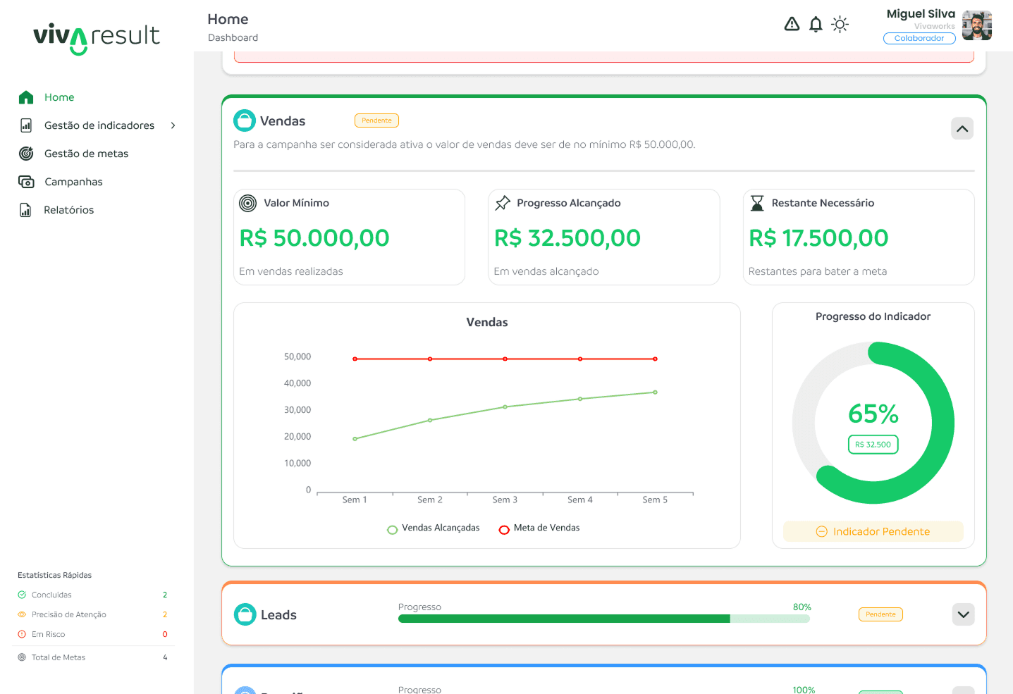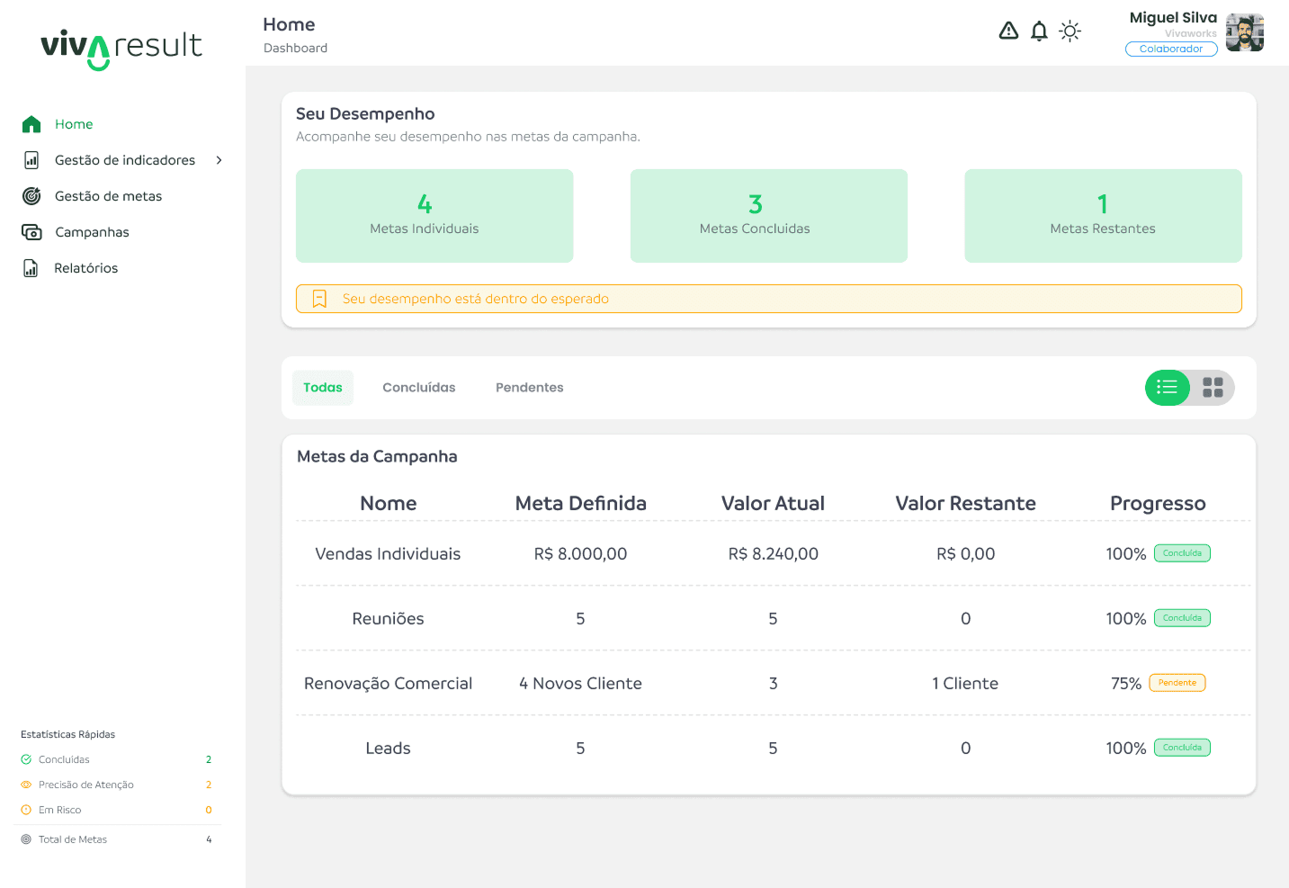 The platform provides clear performance dashboards that allow employees and managers to track progress toward goals and incentive campaigns. Visual indicators help users quickly understand their results, progress, and ranking, increasing transparency and engagement across teams.